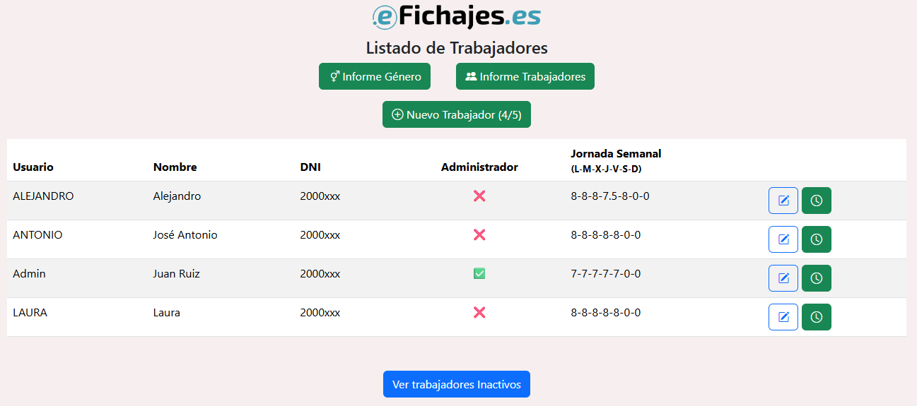 En la lista de trabajadores también podemos pulsar el botón del reloj.