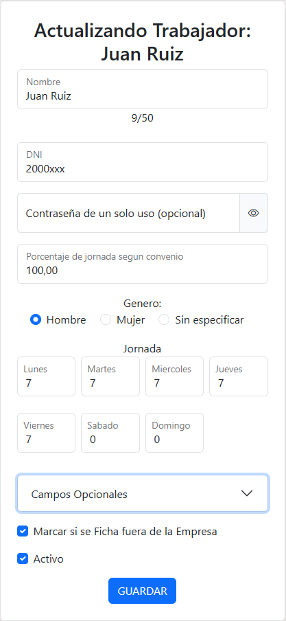 Podemos modificar los datos de un trabajador con su botón de editar.